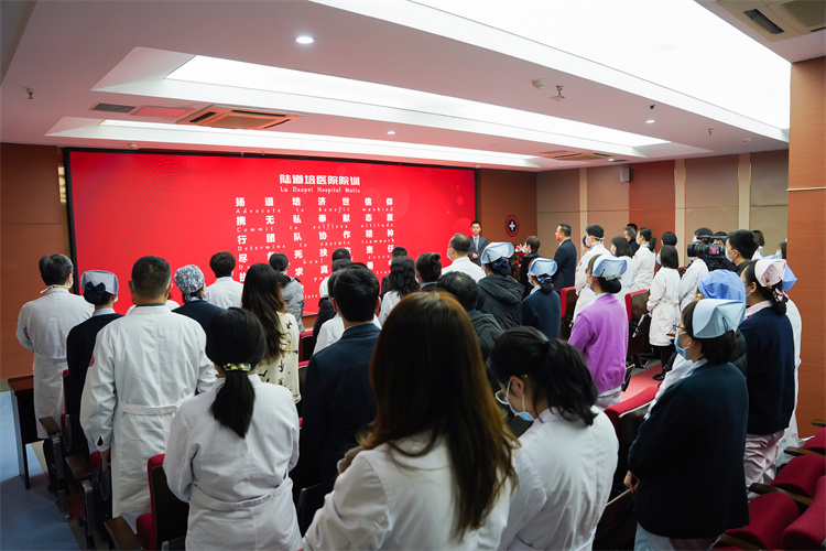 燕達(dá)陸道培醫(yī)院運營副院長谷業(yè)迪帶領(lǐng)與會人員重溫院訓(xùn)